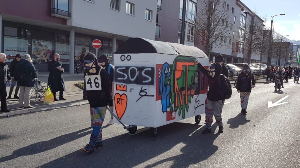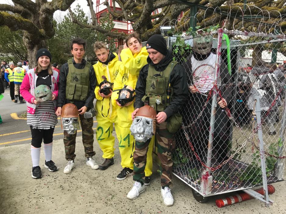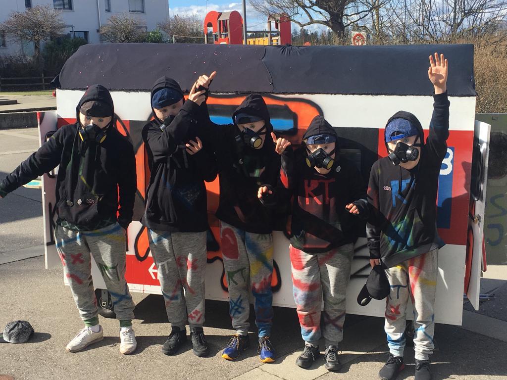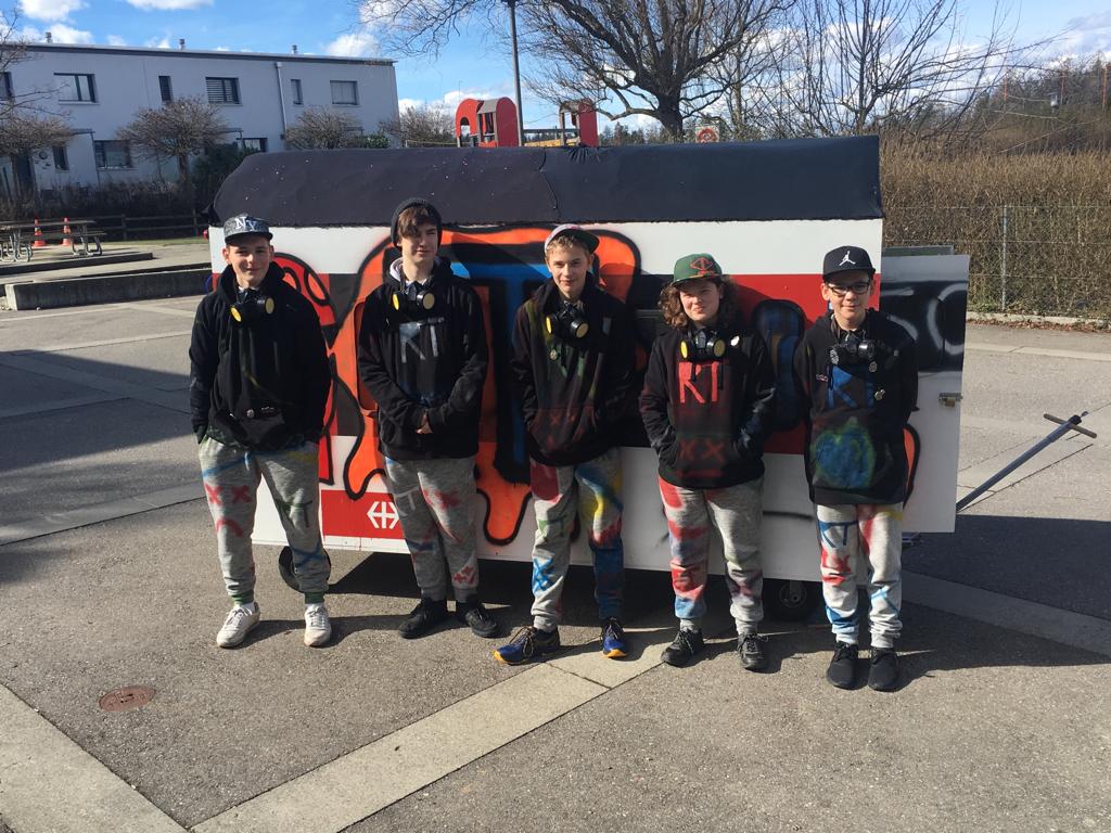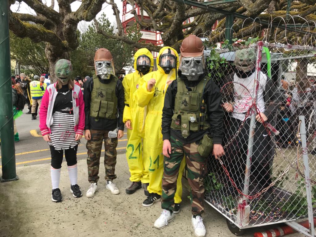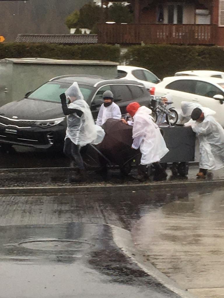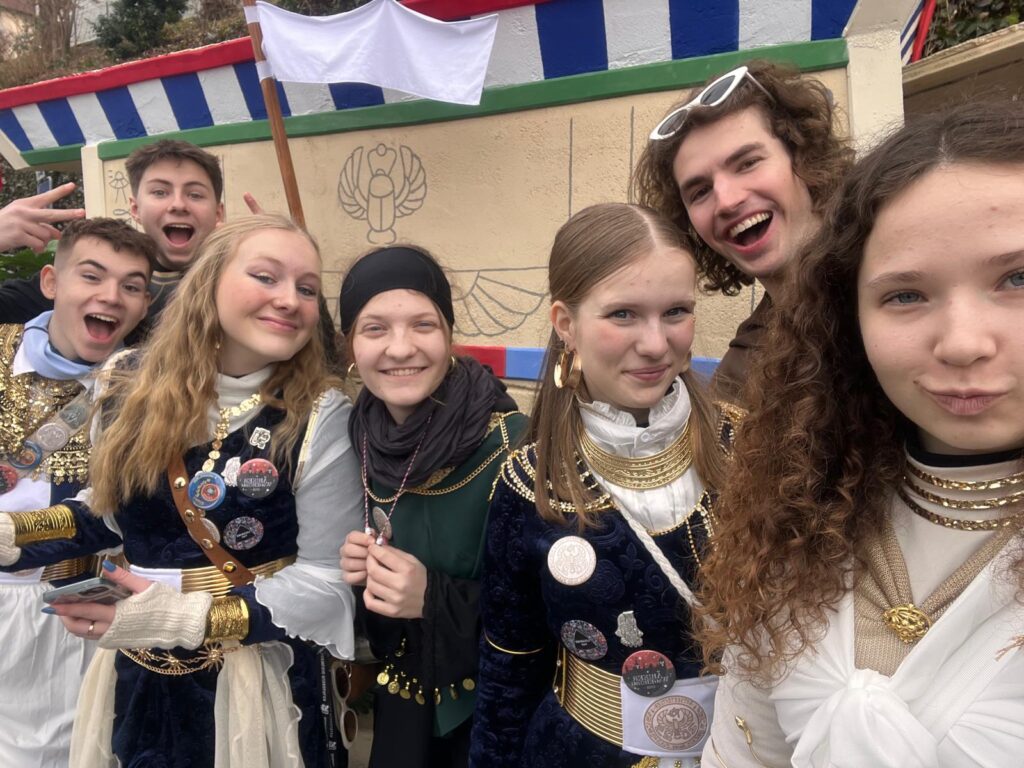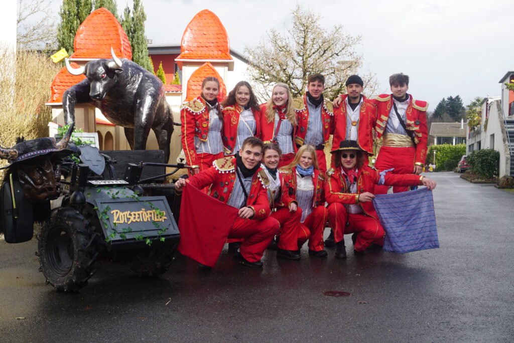 Wel sie so öberzügt gsi send vo erem Kostüm letscht Johr, hends gfonde sie legget grad no eine druf. So hends ofemene lääre Parkplatz ide Gmeinschaftsgarage scho de erscht wage baut. Ond so send de Livio, de Fabio ond de Leo zäme ad d’Fasnacht. I dem Johr sends au s’erschte mol mitere Nommere am Äbiker Omzog metgloffe.